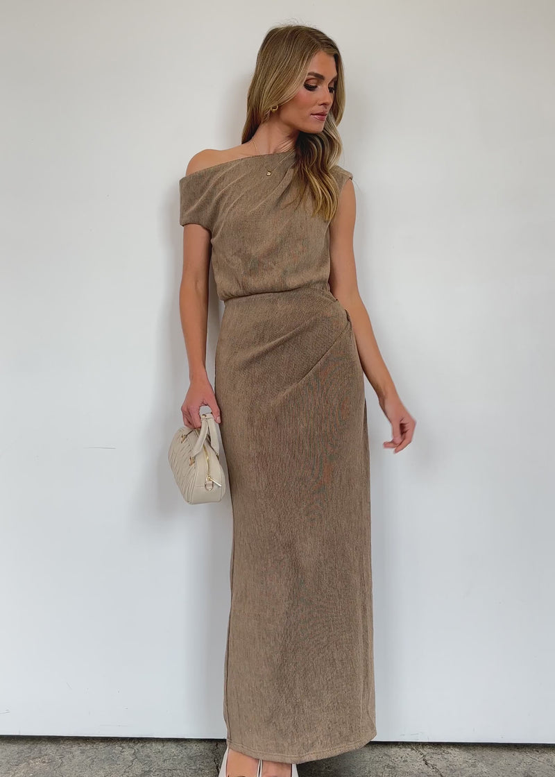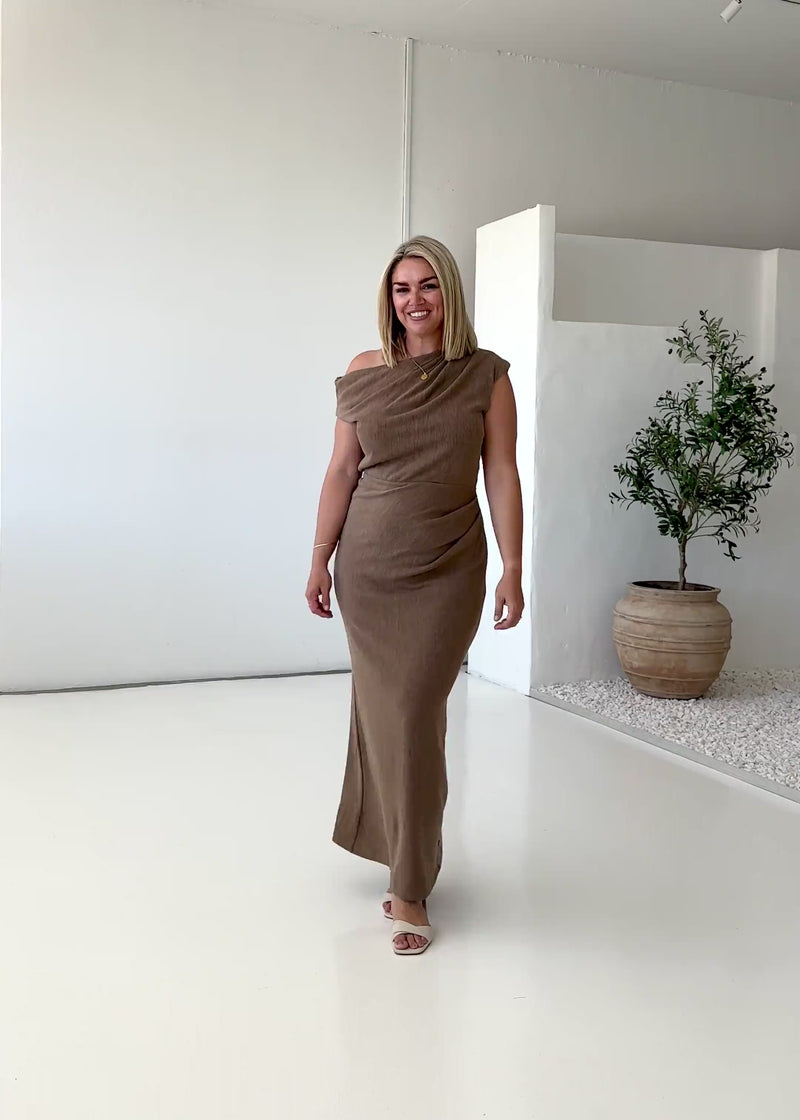 The Tarni Dress in Chocolate is rich in tone and style. Add gold accessories, a small clutch and heels for date nights or formal dinners. Hair up or down—it stuns either way.