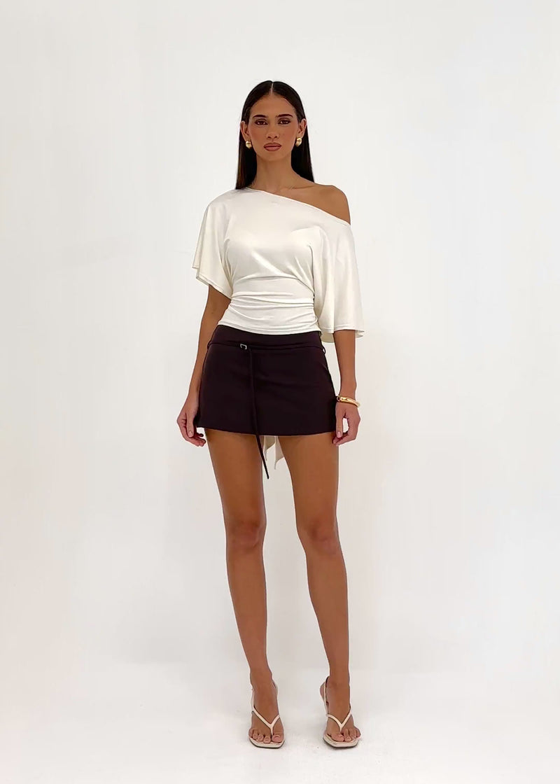 Clean and versatile, the Teegan Tie Top in Ivory pairs effortlessly with denim, skirts, or tailored trousers. Add sandals and layered jewellery for daytime chic or heels for evenings.