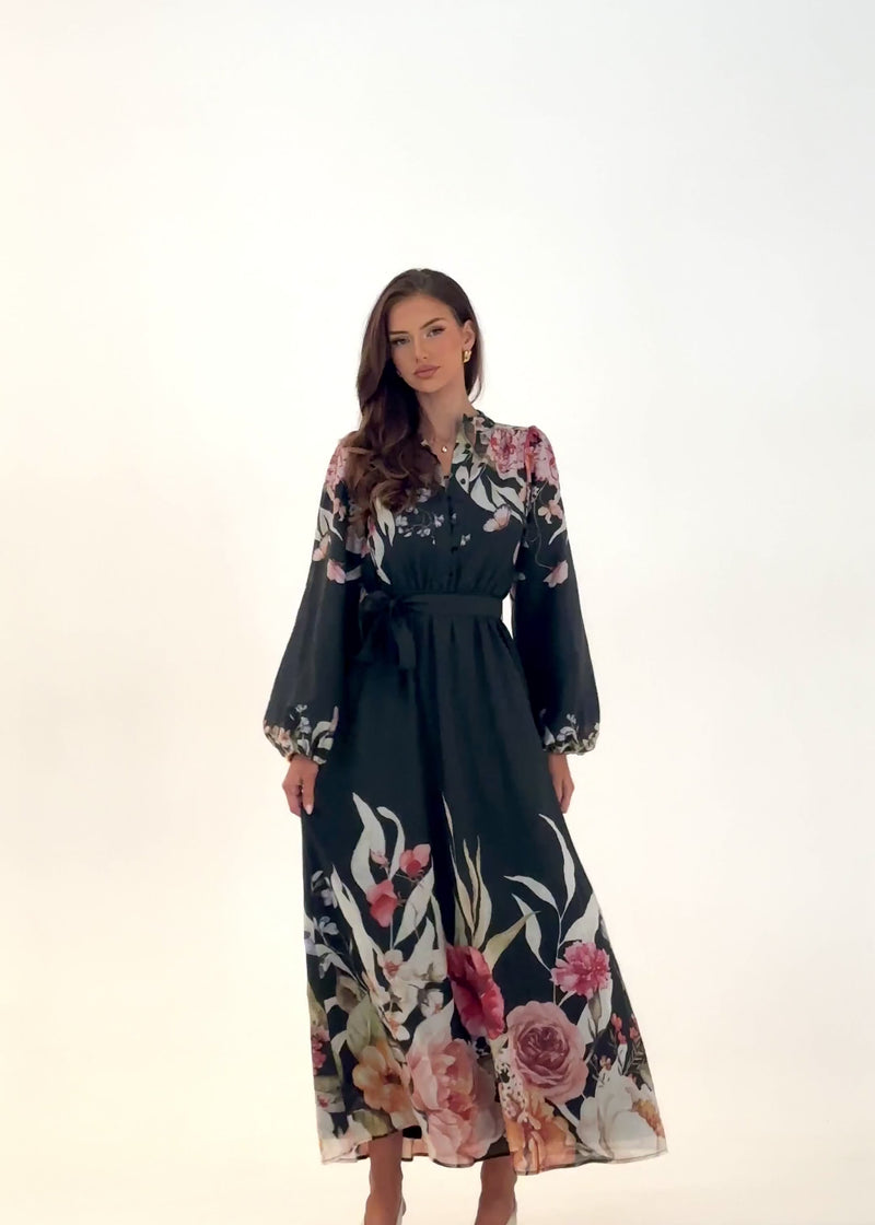 Elegant and versatile, the Tracie Maxi Dress - Black Garden pairs beautifully with block heels and a clutch for evening events or sandals and a denim jacket for day outings. A timeless floral you’ll wear on repeat.