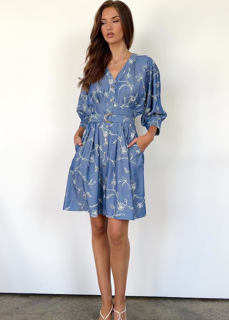 The Wonderlust Dress - Indigo Chambray nails relaxed elegance—style with espadrilles and a wide-brim hat for sunny days or block heels and a clutch for evenings.