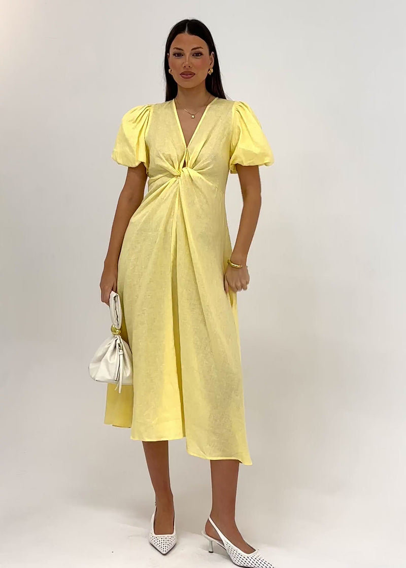 Fresh and timeless, the Yilkia Linen Midi Dress - Butter is perfect for coastal holidays, farmers markets or weekend brunch. Pair with sandals, a woven tote and sunnies for relaxed chic.