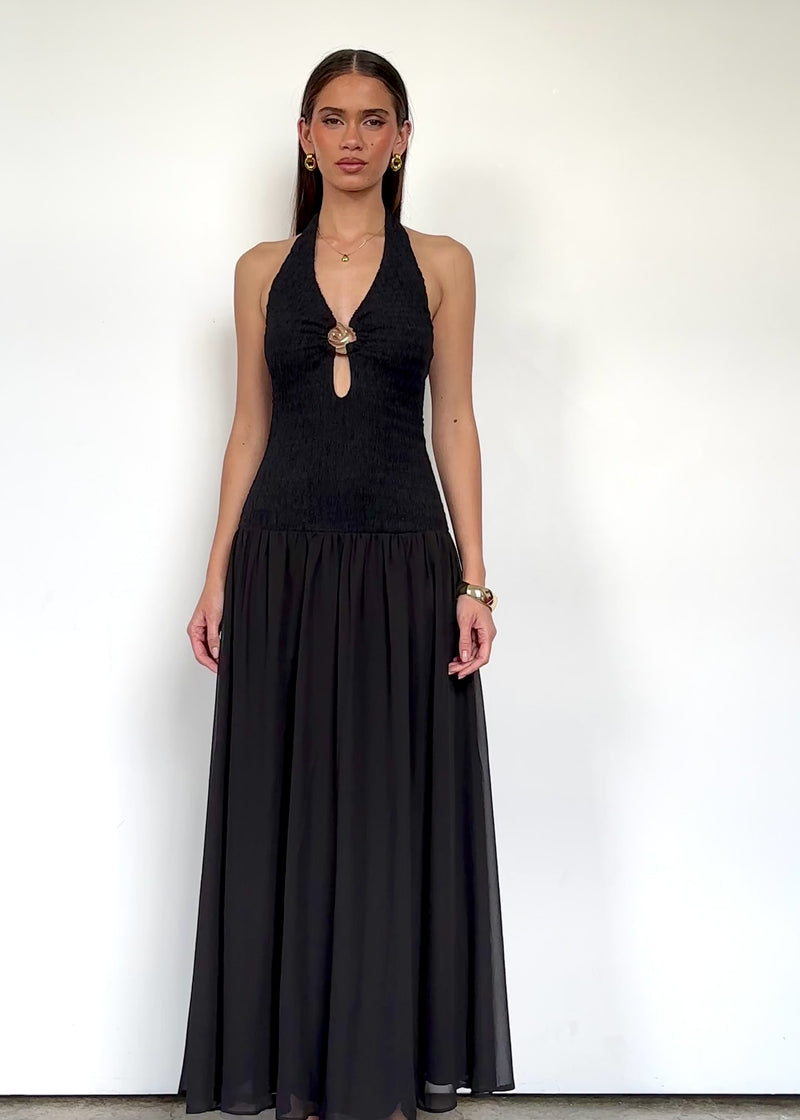 Get ready to stun in the Zantali Halter Maxi Dress – shop yours today.
