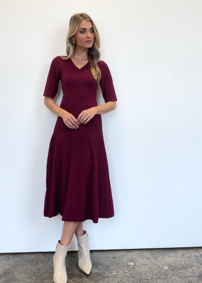 The Acler Knit Midi Dress in Burgundy is your not-so-basic basic. Dress it up with gold hoops, strappy heels and a sleek bun, or wear it casually with slides and a crossbody bag.