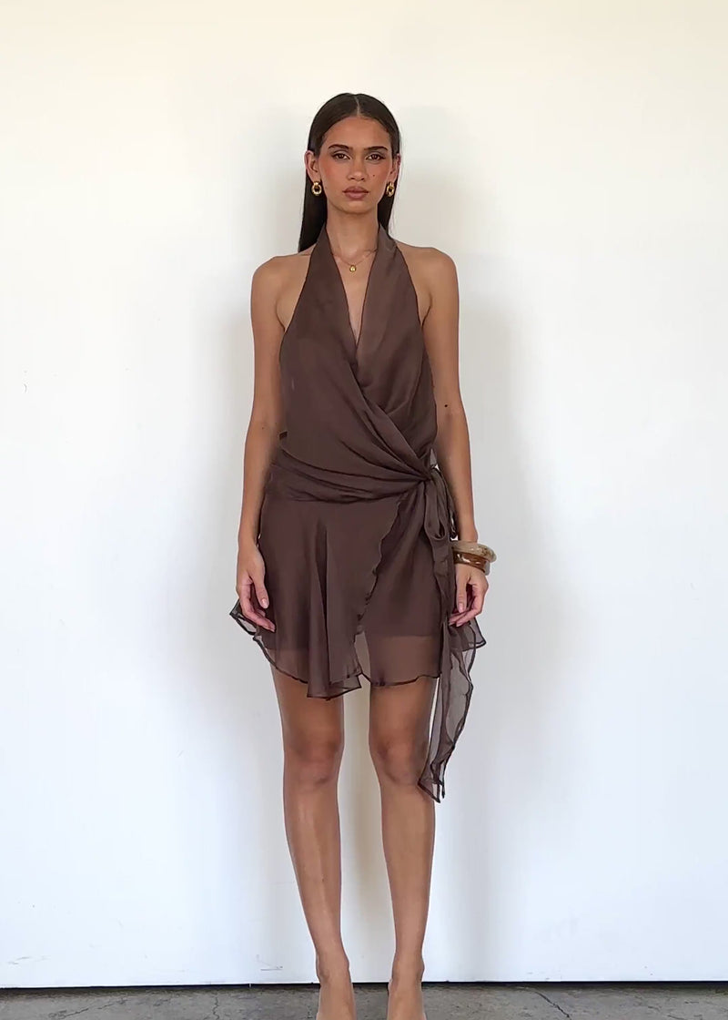 Turn heads in the Aluna Halter Dress – Chocolate. Perfect for dinners, cocktails, or warm-weather parties, pair with heels and gold jewellery for a polished finish.