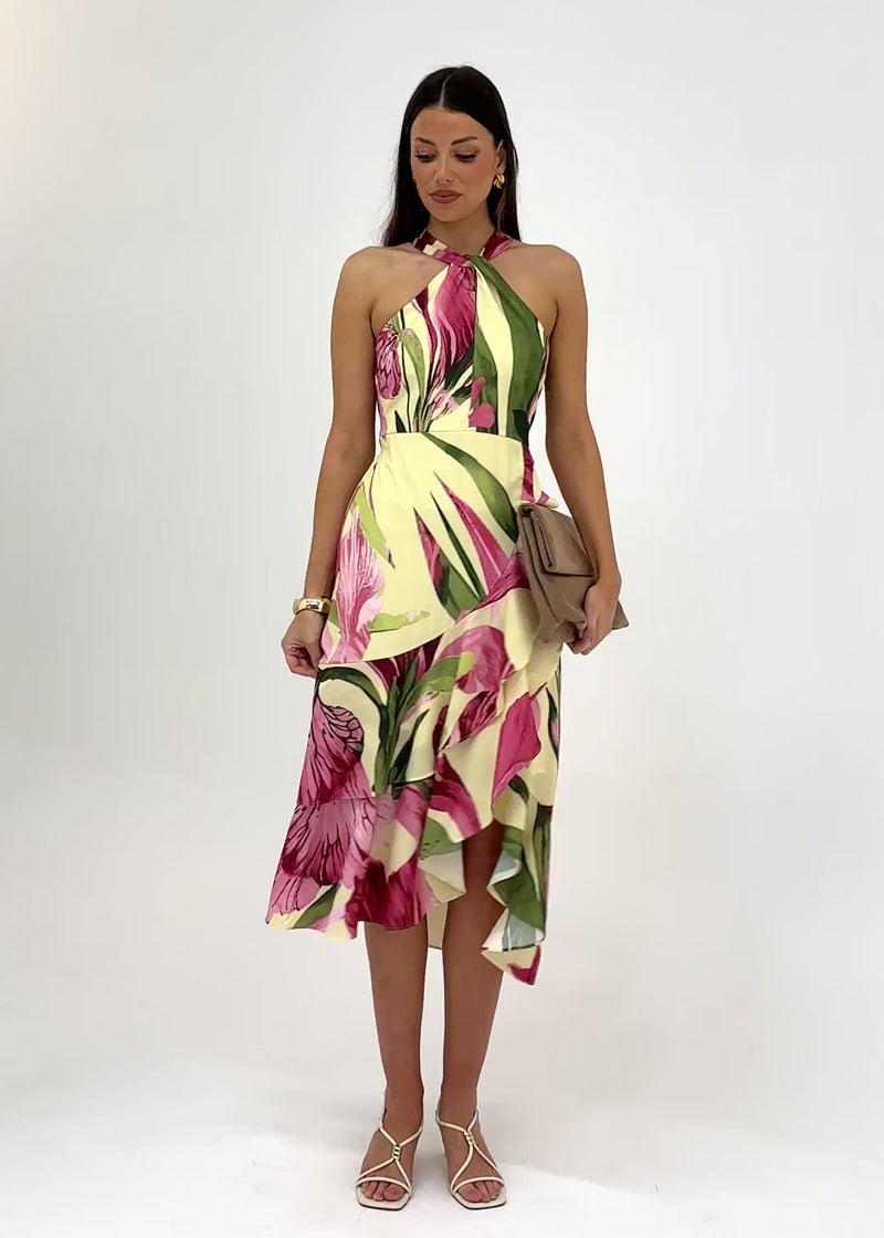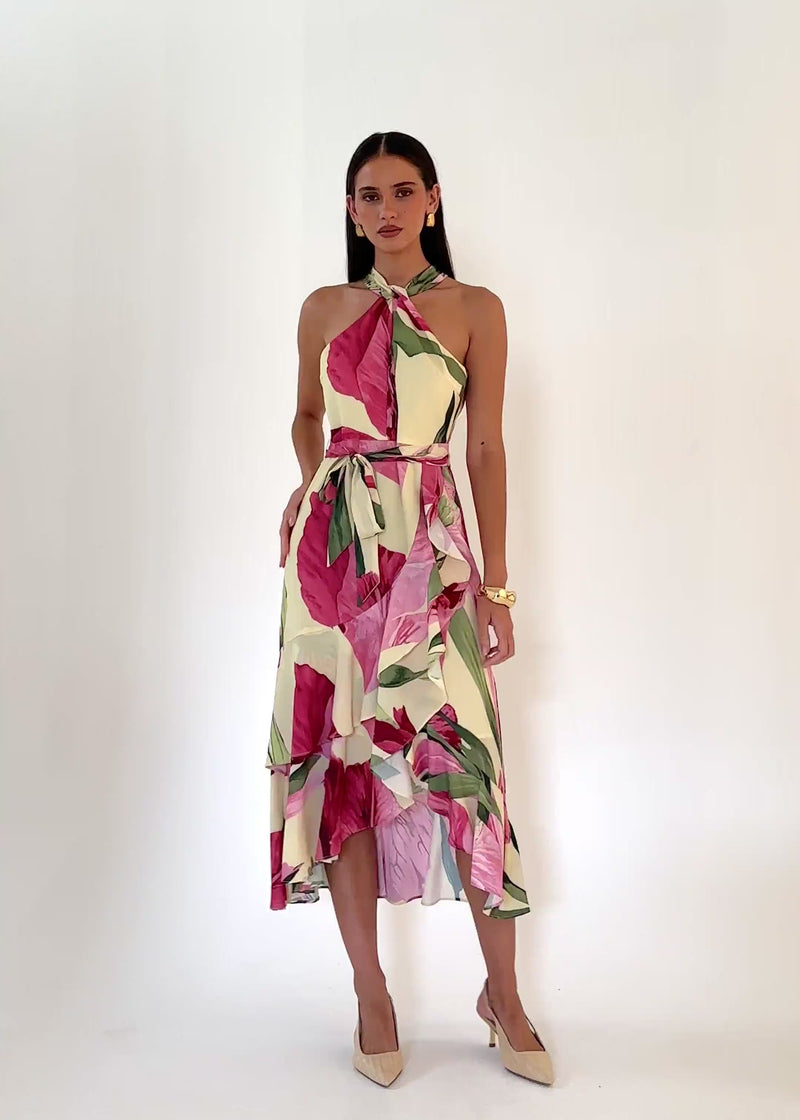 Bright and chic, the Amaris Halter Midi Dress - Lemon Lily is perfect for weddings, long lunches and holiday soirées. Style with gold jewellery and strappy heels for an elevated finish or sandals for effortless day dressing.