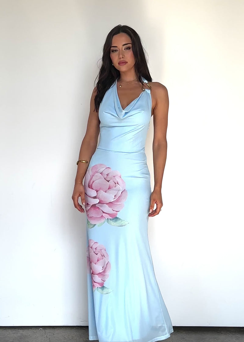 Floaty and feminine, the Amarli Mesh Maxi Dress - Blue Flowers is perfect for weddings, spring soirées or holiday dinners. Style with block heels, drop earrings and a clutch for a dreamy finish.