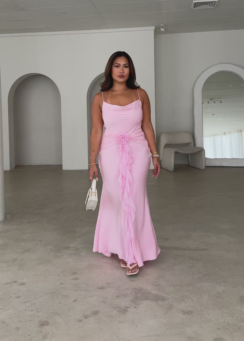 Soft and graceful, the Analeia Maxi Dress – Light Pink suits birthdays, brunch parties, or romantic dinners. Style with pearl jewellery, nude heels, and a mini clutch.
