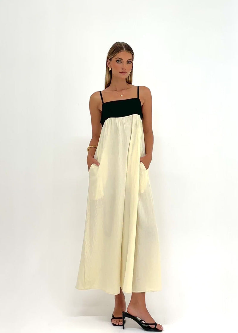 Soft and elegant, the Angelika Maxi in Buttermilk shines at celebrations and soirées. Wear with gold jewellery, heeled sandals, and a structured bag.
