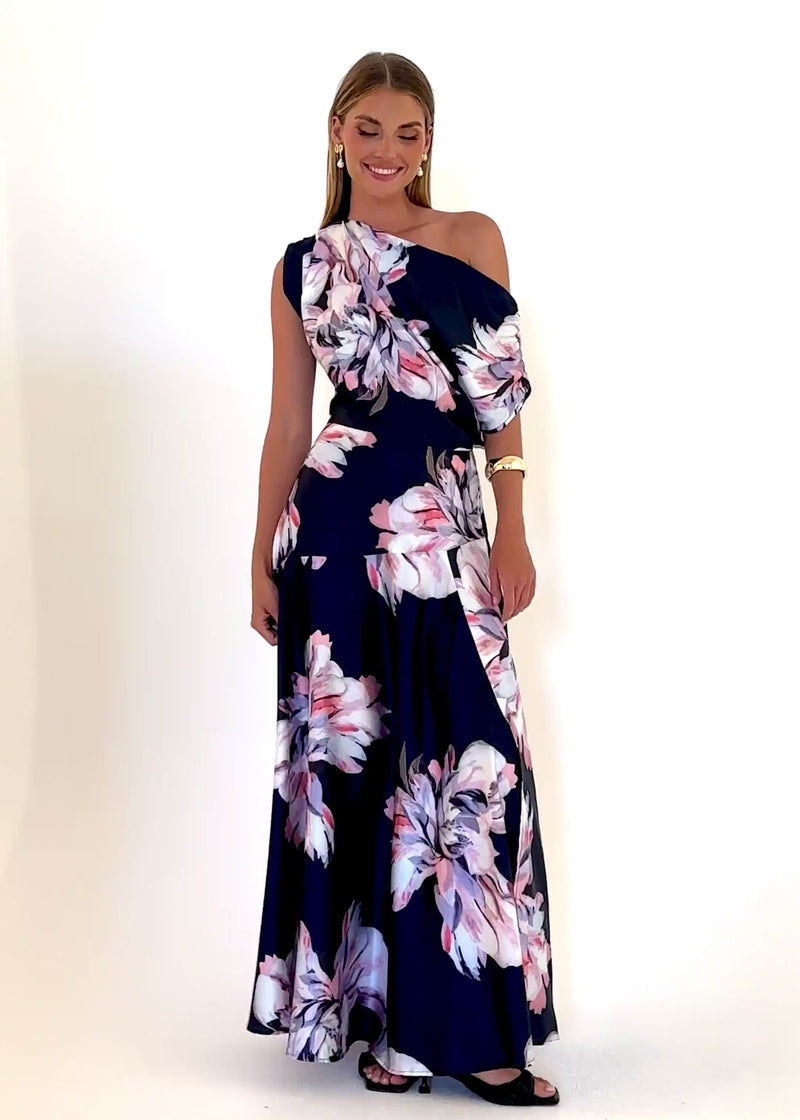 Soft and flowing, the Anina Drop Shoulder Maxi Dress – Navy Blossom suits long lunches, weekend outings, or holiday evenings. Style with sandals and gold accents for relaxed polish.