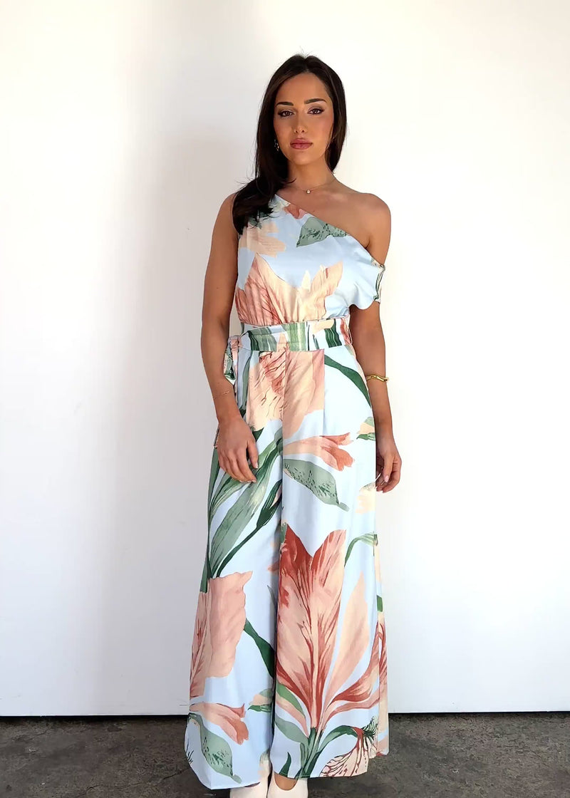 The Ara Drop Shoulder Pantsuit - Blue Oasis brings relaxed sophistication—wear with strappy heels and bold earrings for dinner parties or flats for all-day comfort. Perfect for occasions when you want style without compromising ease.