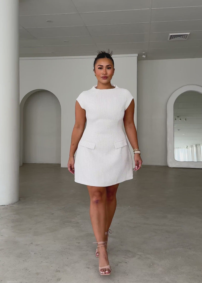 Want to keep it simple but still look chic? The Athena Dress in Off White is just what you need. It’s an easy choice for any occasion, whether you pair it with nude heels and a clutch for a polished look or dress it down with sandals.