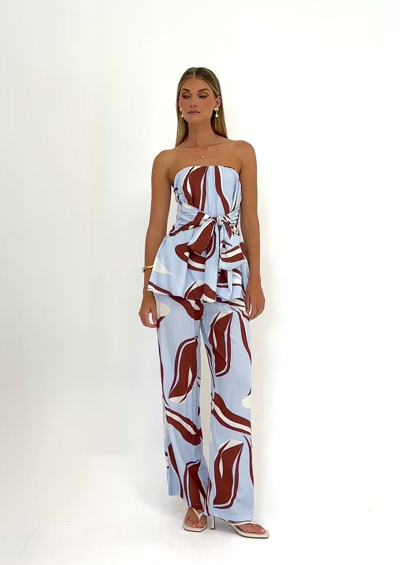 Achieve a sleek look wearing Calia Strapless Top - Blue Abstract. A bold pattern and modern cut serve as a sophisticated choice for holiday dining or summer soirees. Pair this top with the matching Calia Pants, clear heels, and a minimalist blue handbag for a high-impact coordinated set.