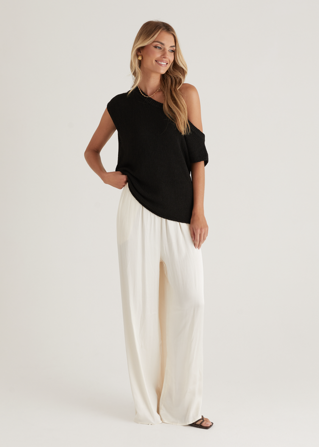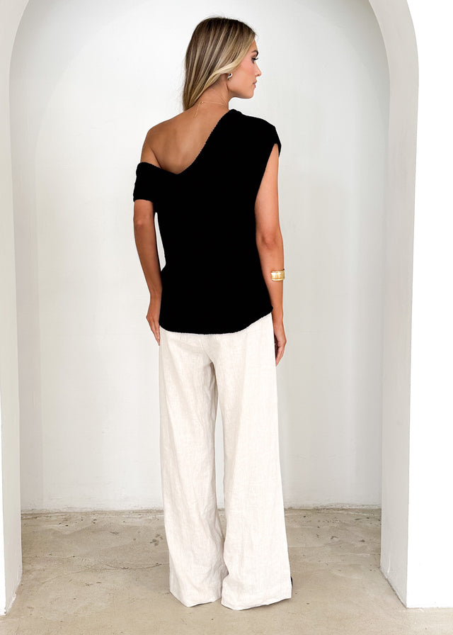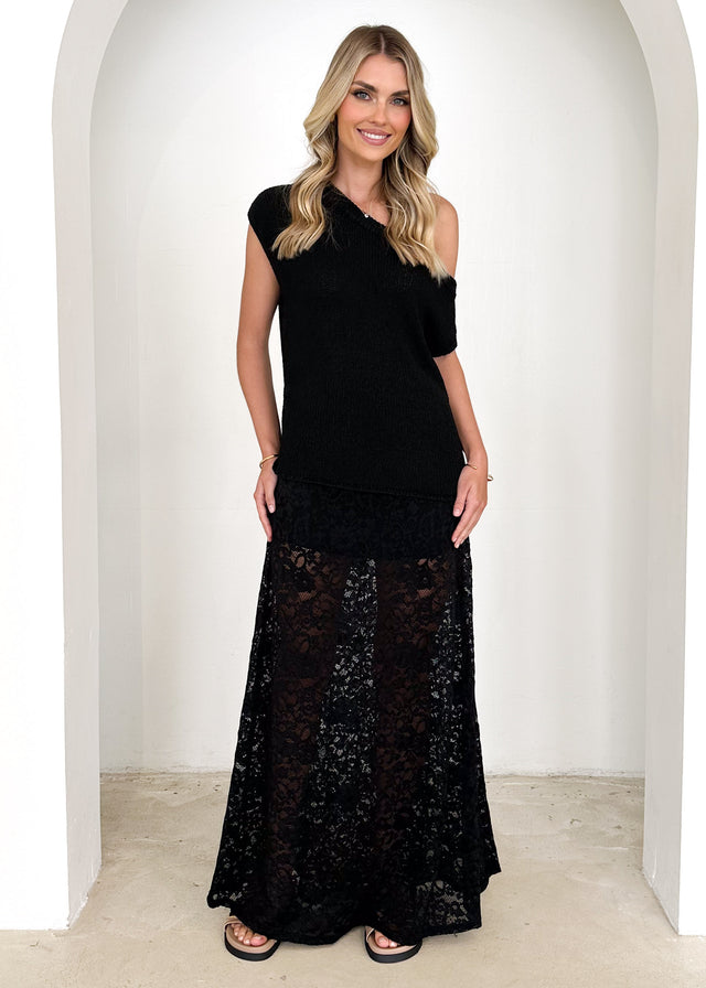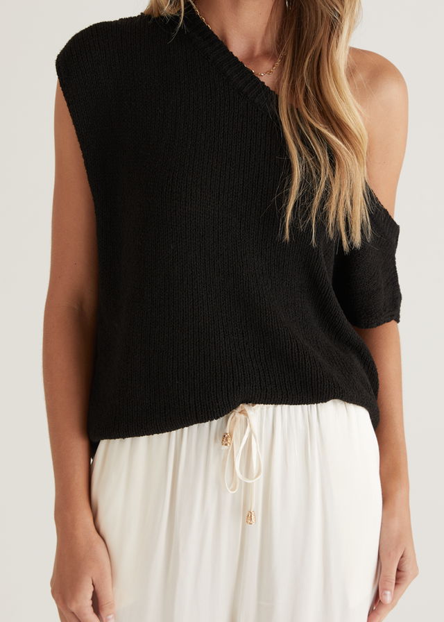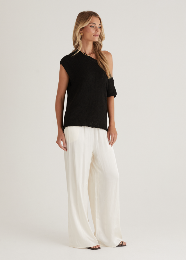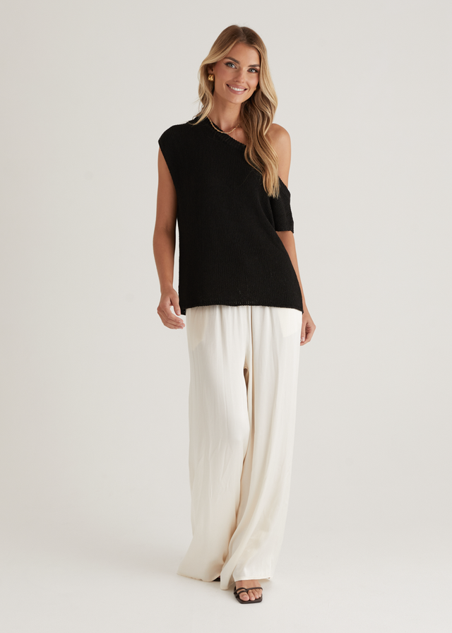 Casoni One Shoulder Knit Top - Black