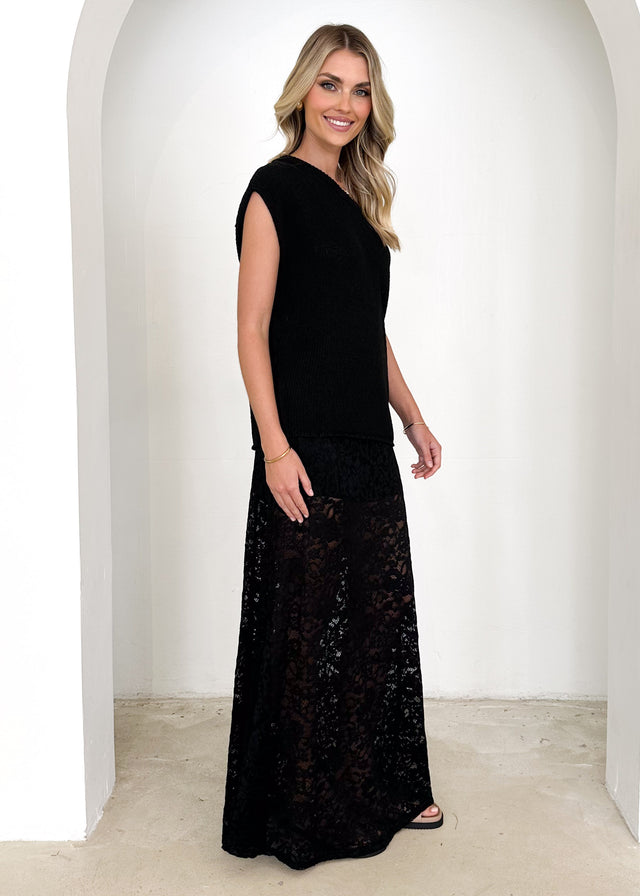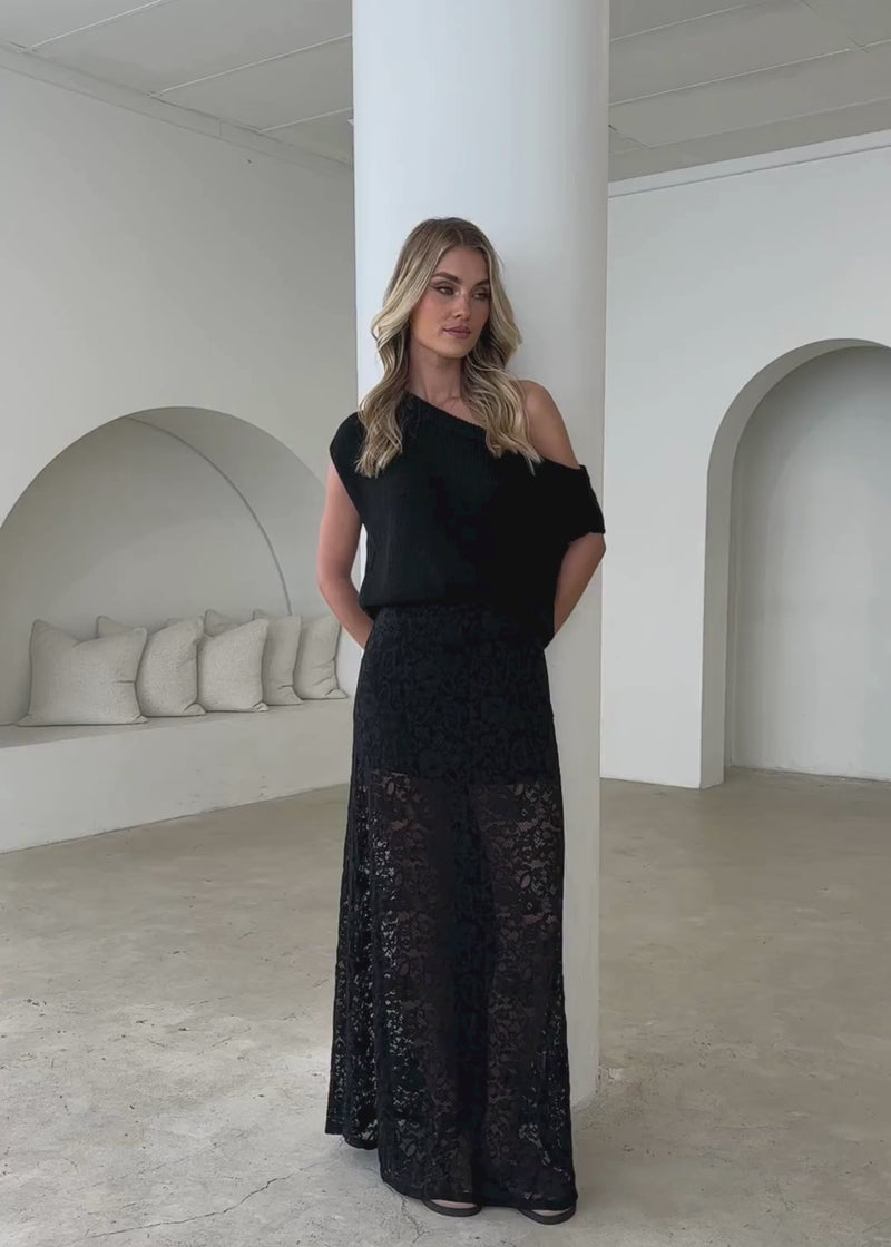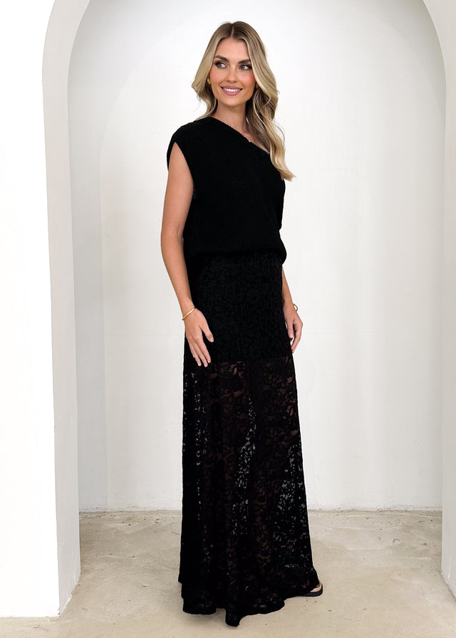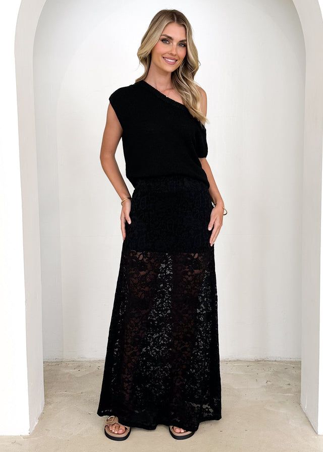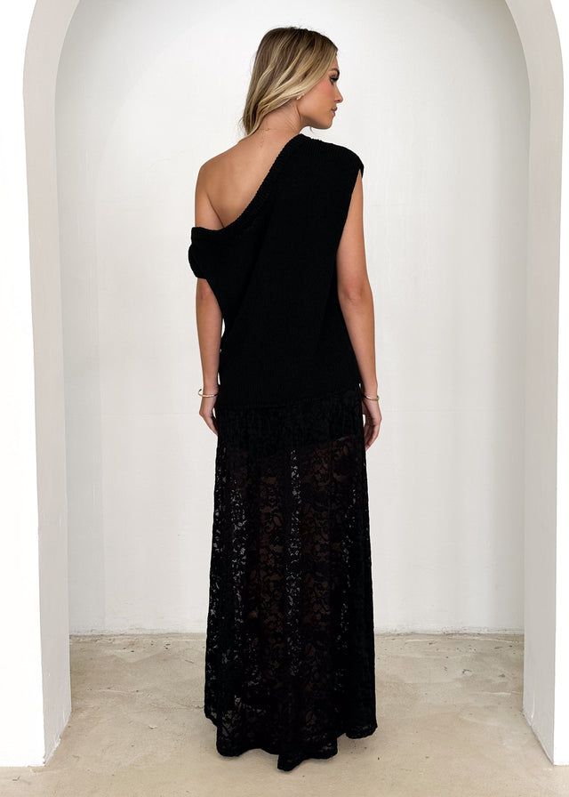 Casoni One Shoulder Knit Top - Black