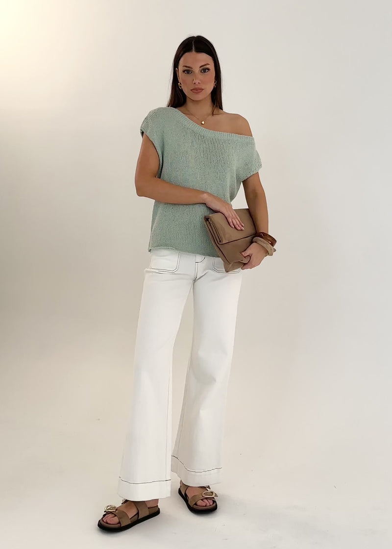 Fresh and modern, the Casoni One Shoulder Knit Top - Sage is perfect for brunch, nights out or layering. Pair with tailored pants, denim or maxi skirts for easy styling.