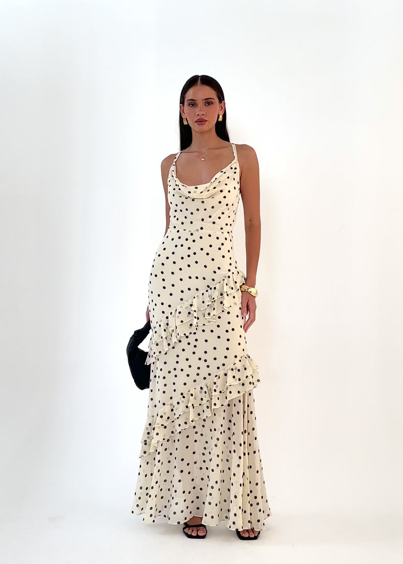 Soft and feminine, the Damica Maxi Dress – Cream Polka is perfect for sunny outings, garden parties, or lunch dates. Pair with sandals, a woven tote, and dainty accents. Add to cart and embrace easy, pretty summer styling!