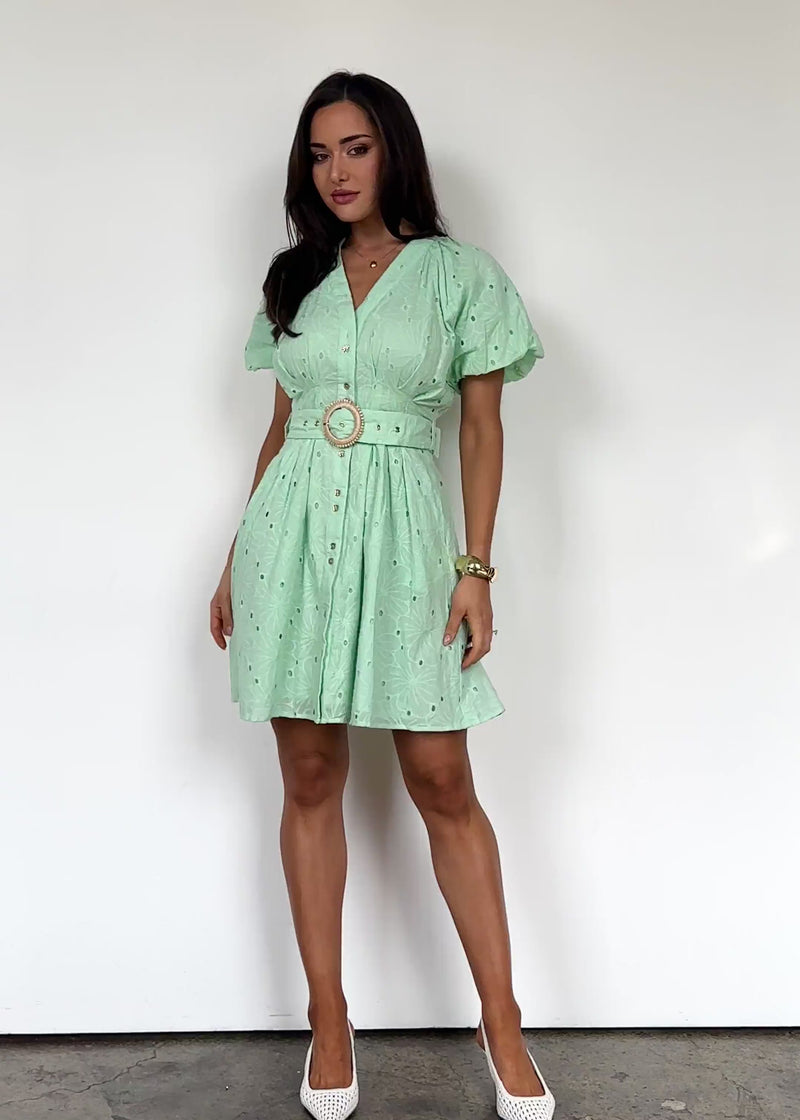 Fresh and lively, the Danney Dress in Pastel Green makes the perfect picnic companion. Add white sneakers, a mini crossbody and sunnies for a crisp daytime outfit.