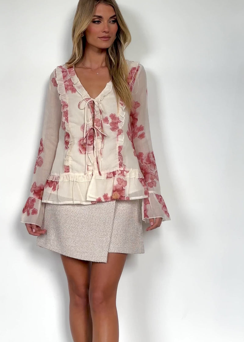 A fresh floral moment never goes out of style! The Daytona Blouse in Pink Floral brings a soft, feminine touch to any outfit with its delicate print and breezy fit. Tuck it into high-waisted trousers and finish with soft waves, gold hoop earrings, and strappy sandals for an effortlessly chic daytime look. A structured tote completes the vibe.