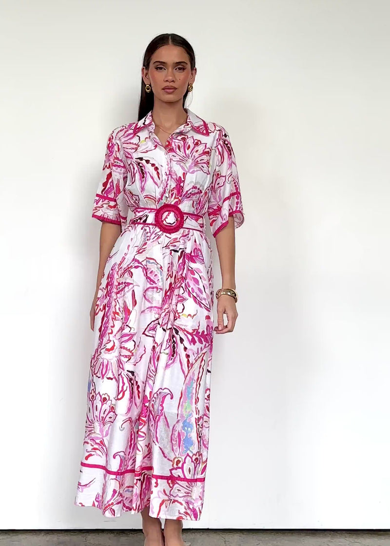 Feminine and fresh, the Delaney Maxi Dress in Botanical Pink is made for brunch dates and garden parties. Style with nude heels and gold jewellery for an elegant touch.