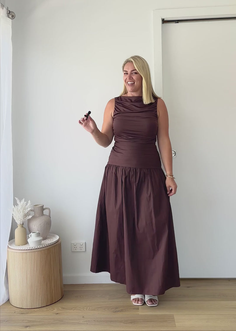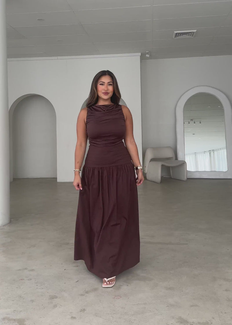 Timeless and elegant, the Dobrev Maxi Dress in Chocolate offers effortless sophistication. Pair with metallic heels and a sleek clutch for evening events, or wear with sandals and a denim jacket for relaxed day styling.