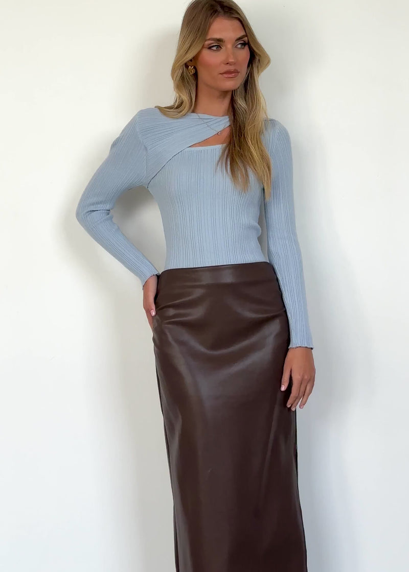 The Fenla Twist Knit Top in Powder Blue is the perfect blend of cosy and chic. Its soft knit fabric and twist-front detail make it an effortless choice for any occasion. Pair it with high-waisted jeans for an easy everyday look or style it with tailored trousers for a more refined vibe.