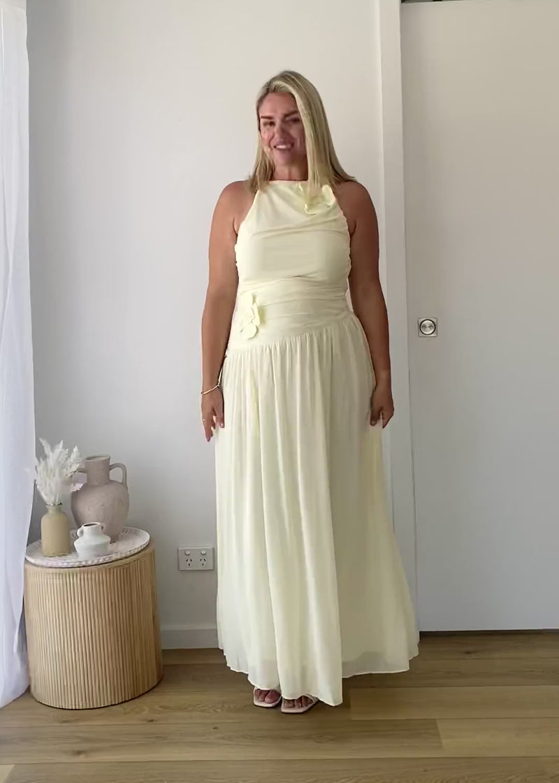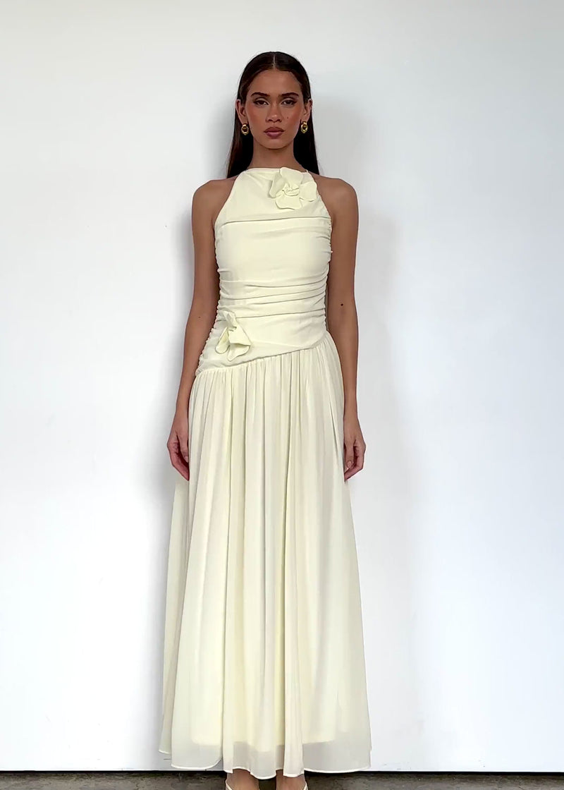 The Gillian Maxi Dress in Butter is pure sophistication with a soft, romantic feel. Its ruched details and graceful flow make it a timeless choice for weddings or special events. Complete your look with pearl studs, block heels, and a dainty clutch.