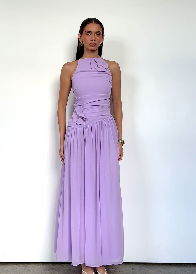 Keep it elegant yet dreamy in the Gillian Maxi Dress in Lilac. Designed with gentle ruching and a flattering drape, it’s perfect for sunset dinners or formal occasions. Style with silver heels, a dainty necklace, and a sleek bun for an effortlessly chic finish.