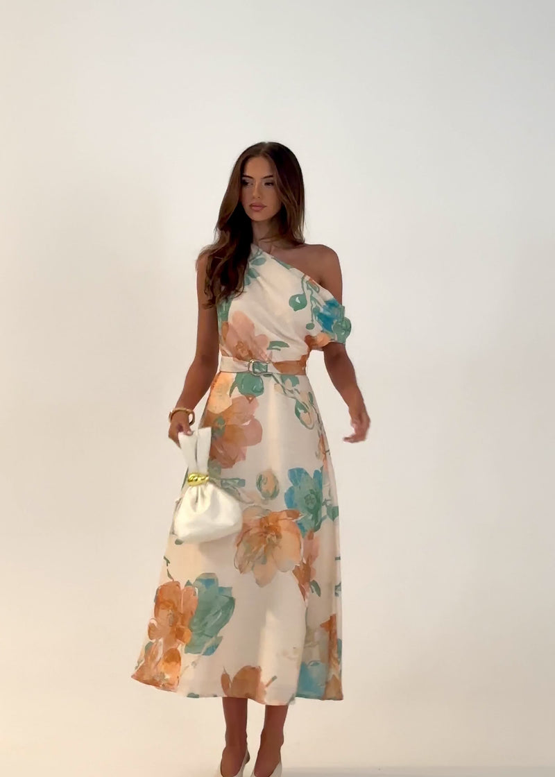 Vibrant and fun, the Jacqui Drop Shoulder Midi Dress - Tangerine Floral shines with white trainers for casual days or heeled sandals for nights out. The bold print and relaxed cut make it perfect for any summer occasion.