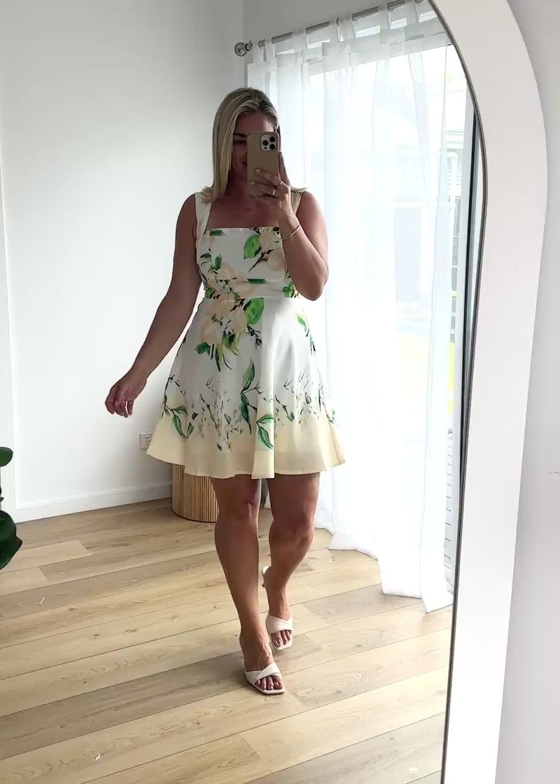 Bring on the sunshine in the Kenai Dress - Lemon Blossom. With its sweet square neckline and playful silhouette, it’s perfect for brunches, picnics, or garden parties. Pair with strappy sandals and gold hoops.
