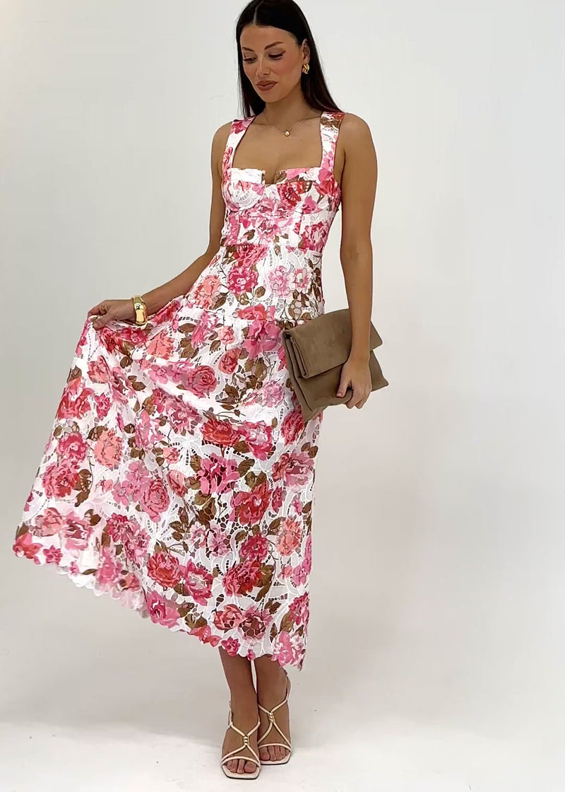 Pretty and versatile, the Kivari Midi Dress - Pink Flowers makes the perfect choice for brunch, picnics or casual gatherings. Pair with slides and a raffia bag for day, or heels and earrings for an elevated touch.
