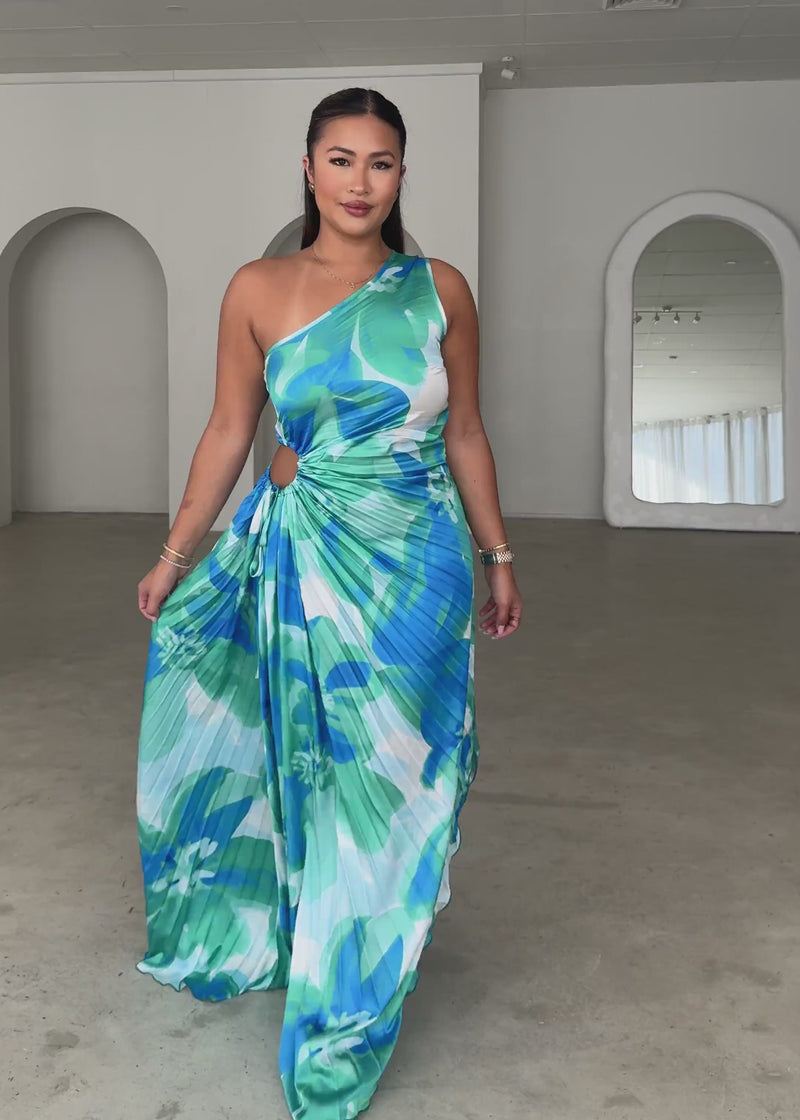 Make a modern statement in the Kiyo One Shoulder Midi Dress, a sleek aqua petal design with sculpted lines and a striking neckline. Perfect for special occasions and elegant evenings. Pair with minimal heels.
