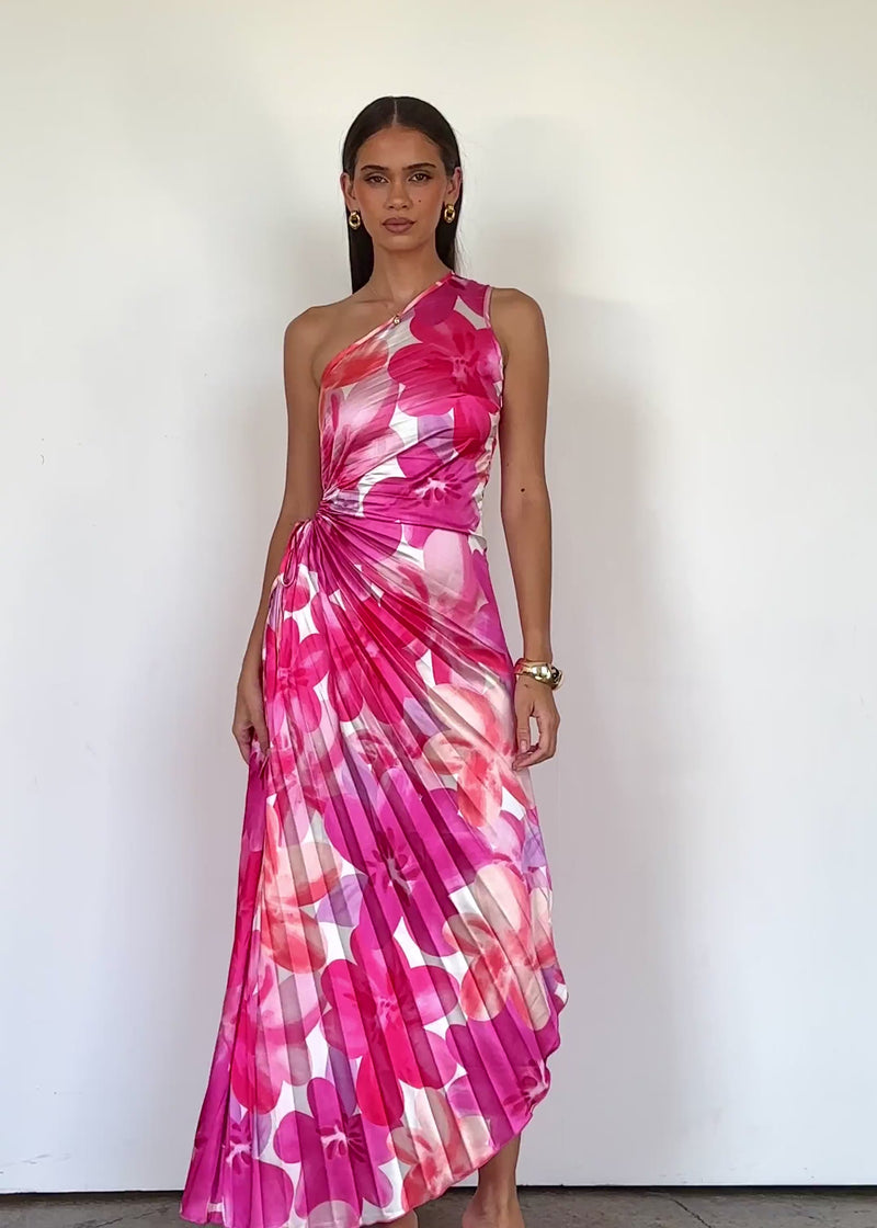 Step out in soft sophistication with the Kiyo One Shoulder Midi Dress in pink petal, crafted with smooth shaping and a chic asymmetric neckline. Ideal for celebrations and warm-weather evenings. Style with nude tones.