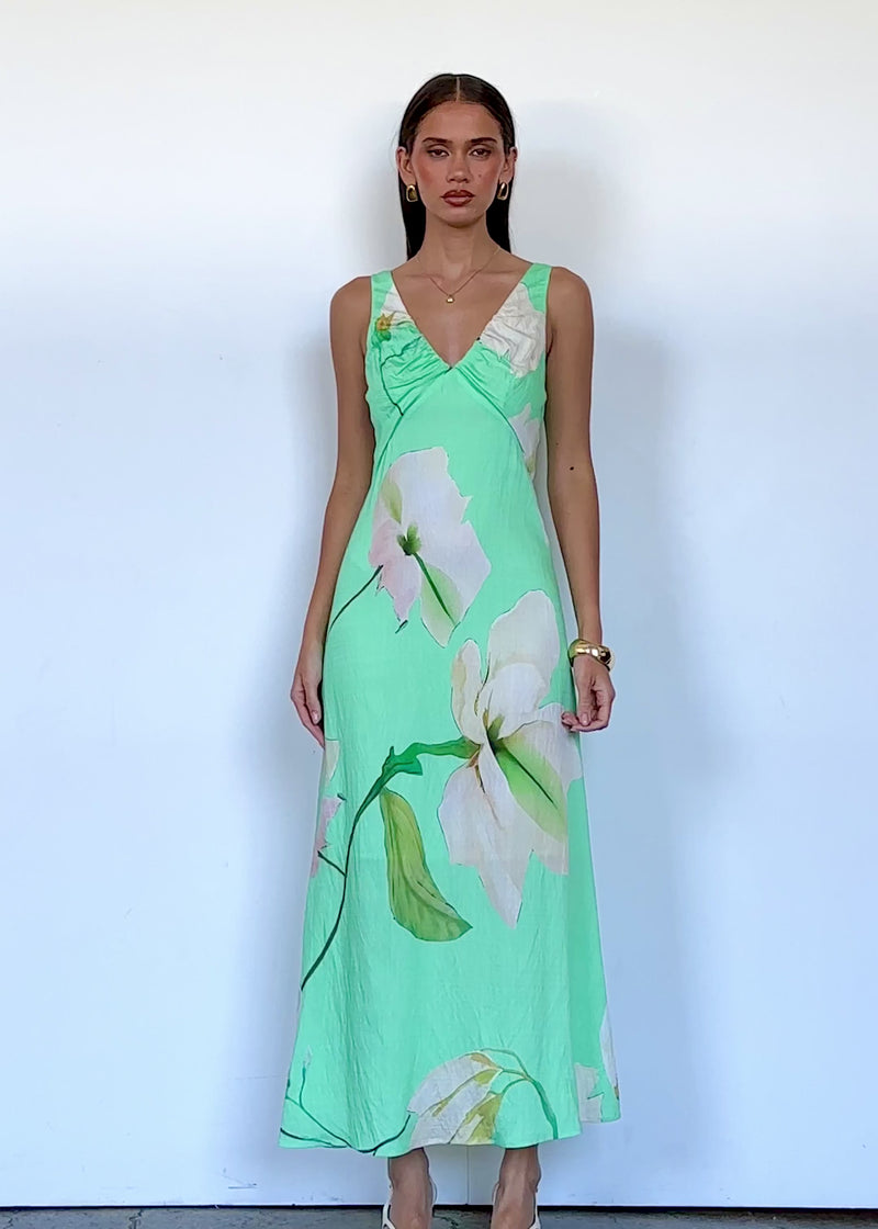 Fresh and breezy, the Klaudia Maxi Dress – Mint Flowers suits long lunches, daytime events, or relaxed holiday plans. Pair with nude heels, soft earrings, and a small clutch for a gentle, feminine finish. Add to cart and embrace effortless summer beauty!