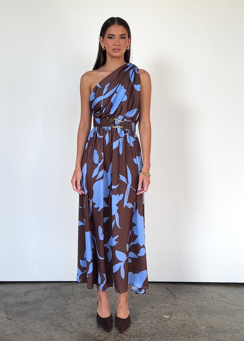 Channel modern elegance with the Korah One Shoulder Midi Dress in blueberry choc. Pair with strappy heels and a metallic clutch for cocktail nights, or style with chunky sandals and a denim jacket for brunch-ready flair.