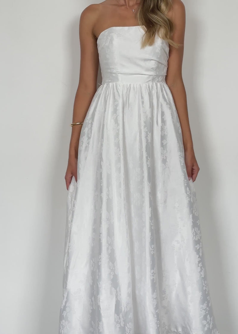 Add this timeless off-white strapless maxi to your wardrobe now!