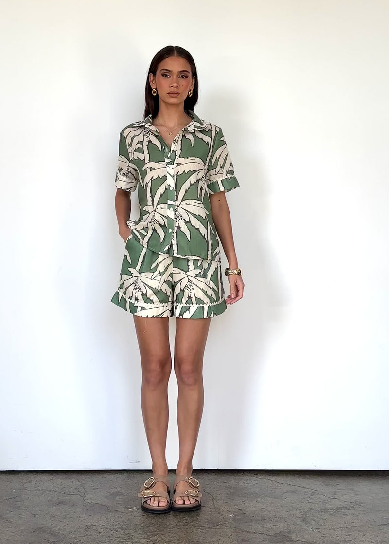 The Laurie Shorts in Sage Palm are made for laid-back days and warm destinations. With a relaxed fit and playful print, they pair perfectly with the Laurie Shirt or a crisp white tank. Just add slides and sunnies.