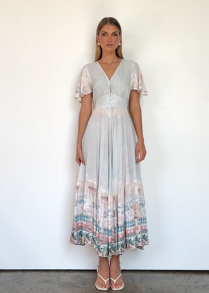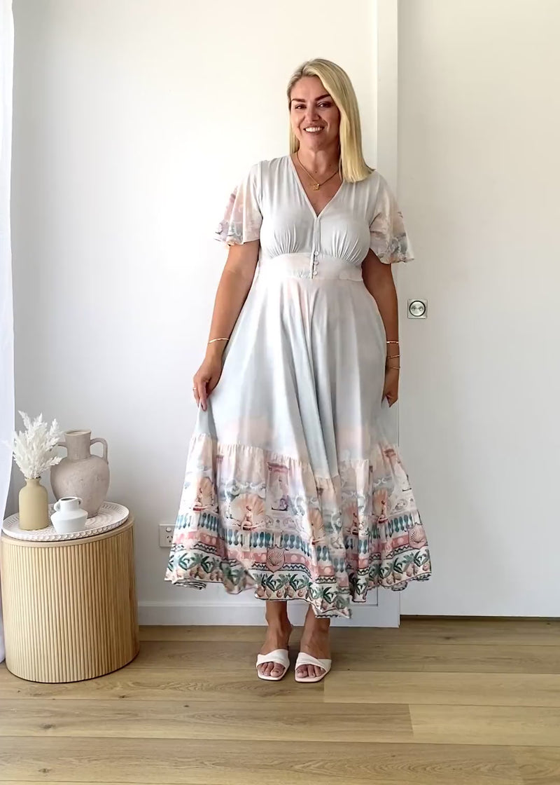 The Liyana Maxi Dress in Siren Seas blends island vibes with city elegance. Dress it up with strappy sandals and gold details for evenings, or keep it relaxed with slides for beach days.