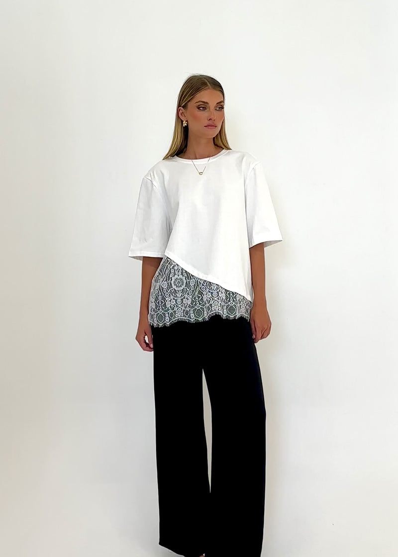 - Features: Asymmetric detail, Lace detail, Boxy style, Oversized look