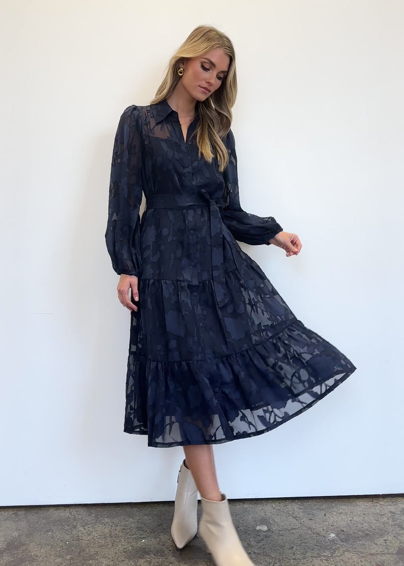 Here’s a classic you’ll keep reaching for. The Lucinda Maxi Dress in Navy brings elegance to any occasion with its flattering silhouette and refined feel. Pair with nude heels, soft waves, and pearl earrings for a timeless finish.