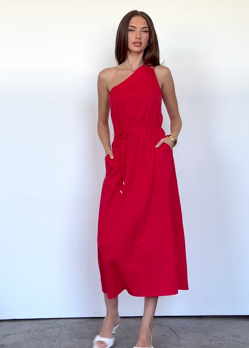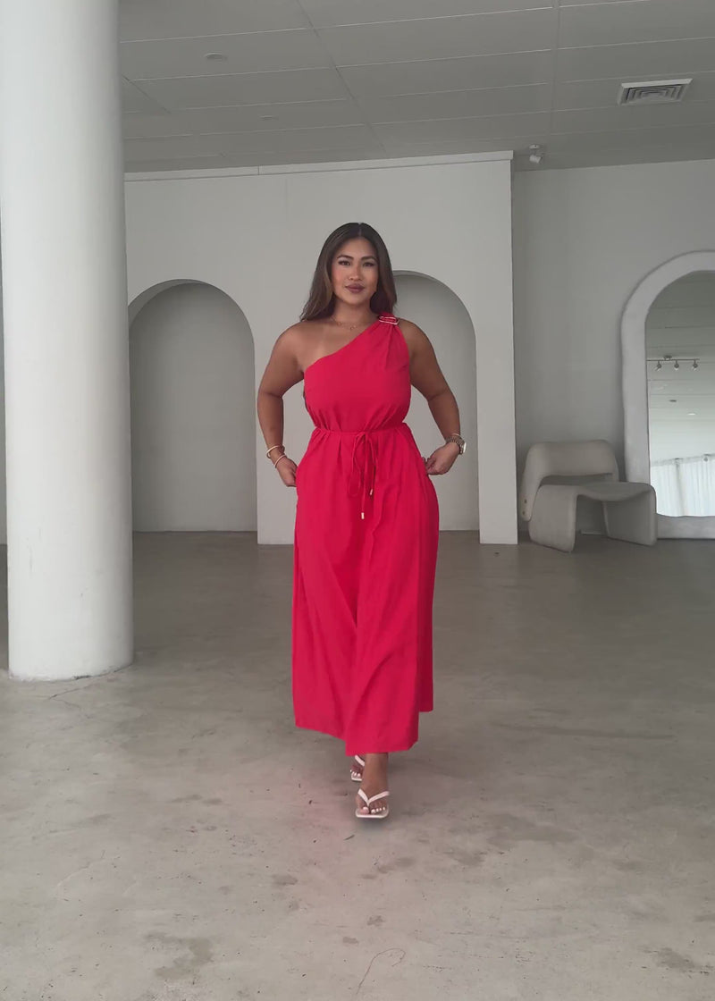 Steal the spotlight in the Lunia One Shoulder Maxi Dress - Red. Perfect for cocktail parties, weddings, or evening events, pair with heels, a clutch, and bold accessories.