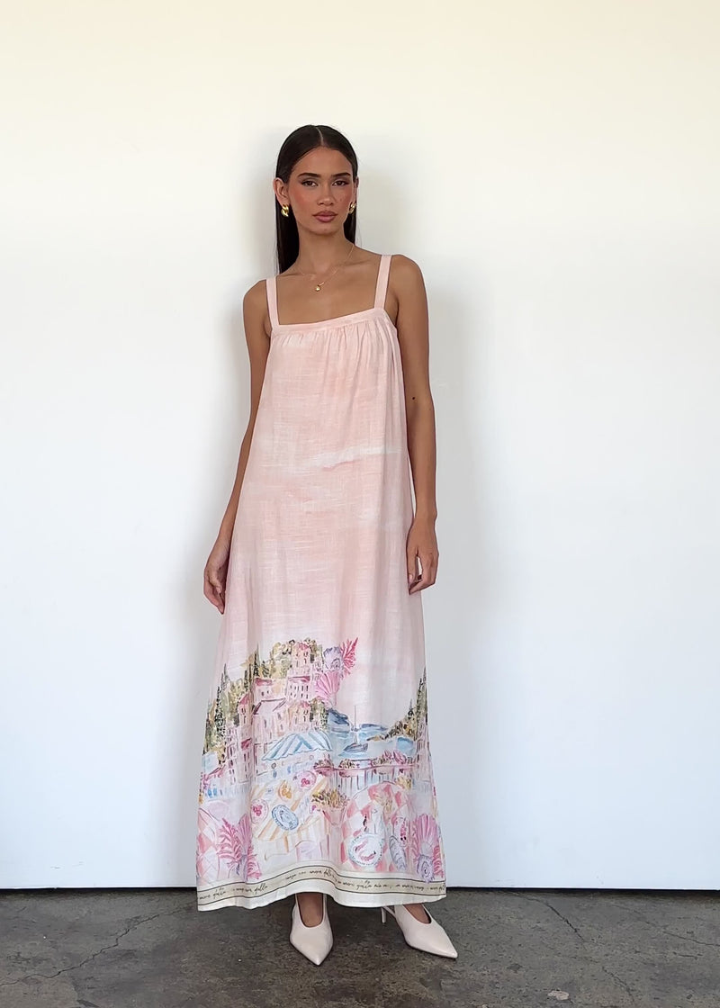 Romantic yet modern, the Lynsie Maxi Dress in Luciana Pink flows beautifully for garden parties or weddings. Pair with soft curls and neutral heels for an elegant touch.