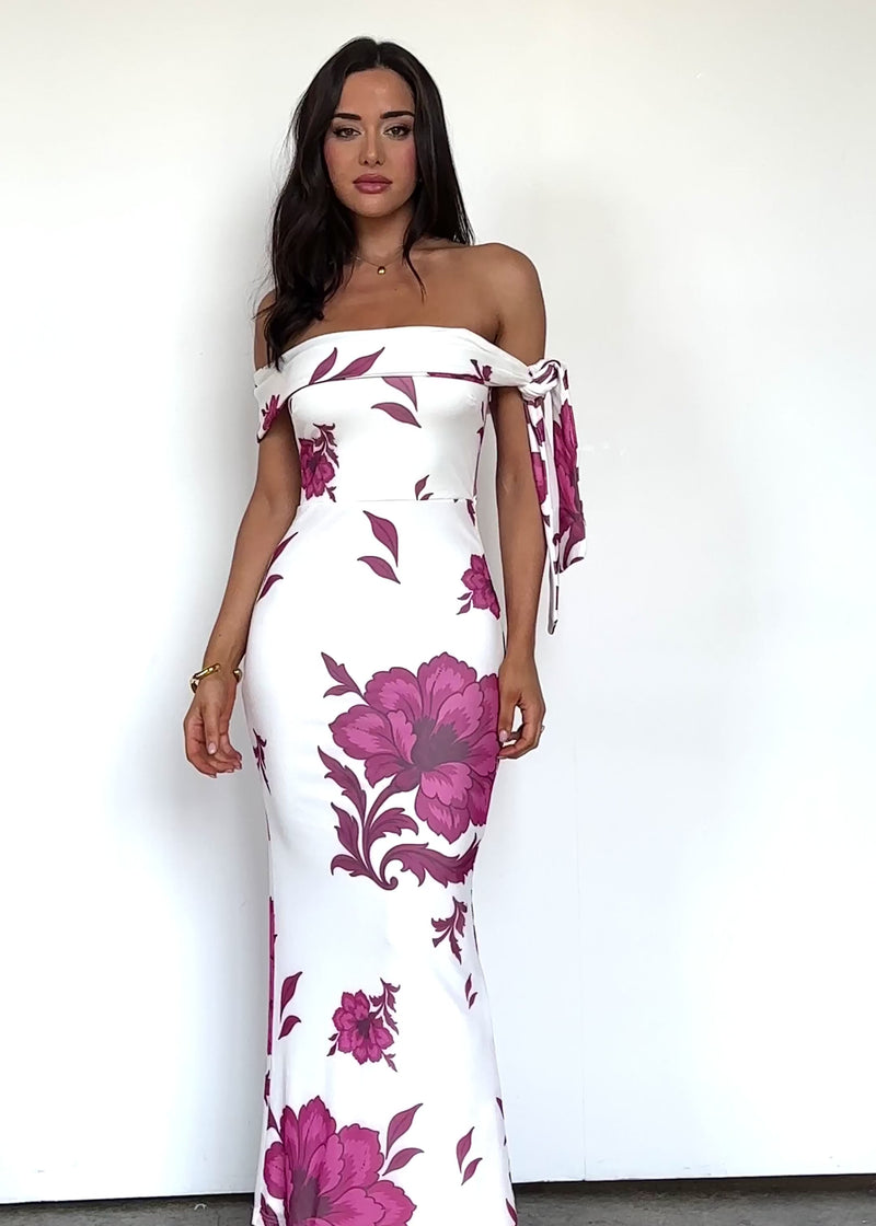 Bright and feminine, the Madisyn Maxi Dress - Berry Flowers is made for summer holidays, afternoon teas and date nights. Style with nude wedges for day or metallic heels for evening elegance.