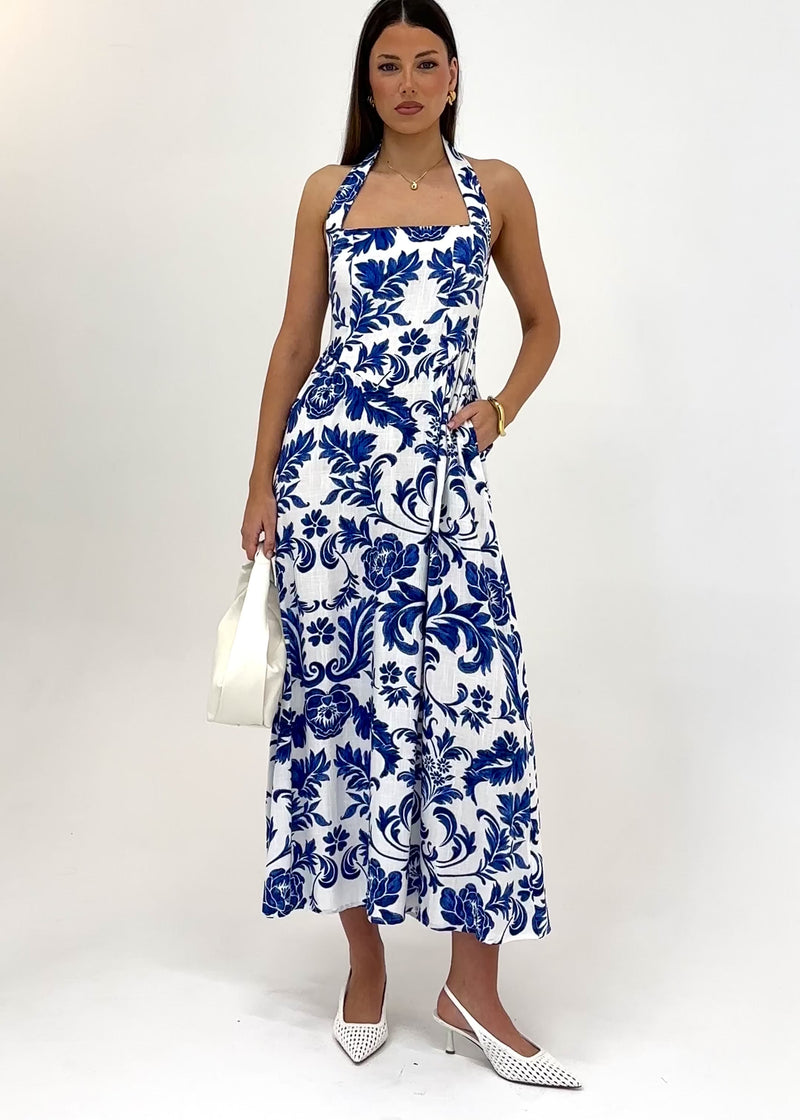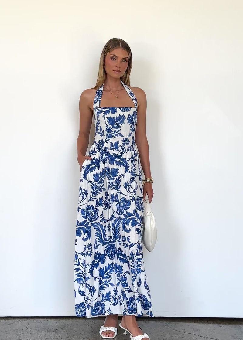 Elegant yet daring, the Mahiya Halter Maxi Dress - Baroque is made for events, cocktails and resort evenings. Style with gold heels and a sleek clutch to complete the look.