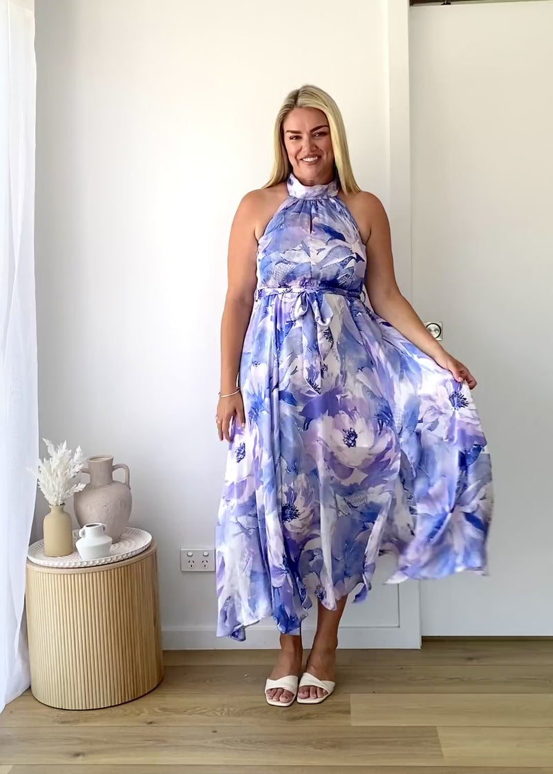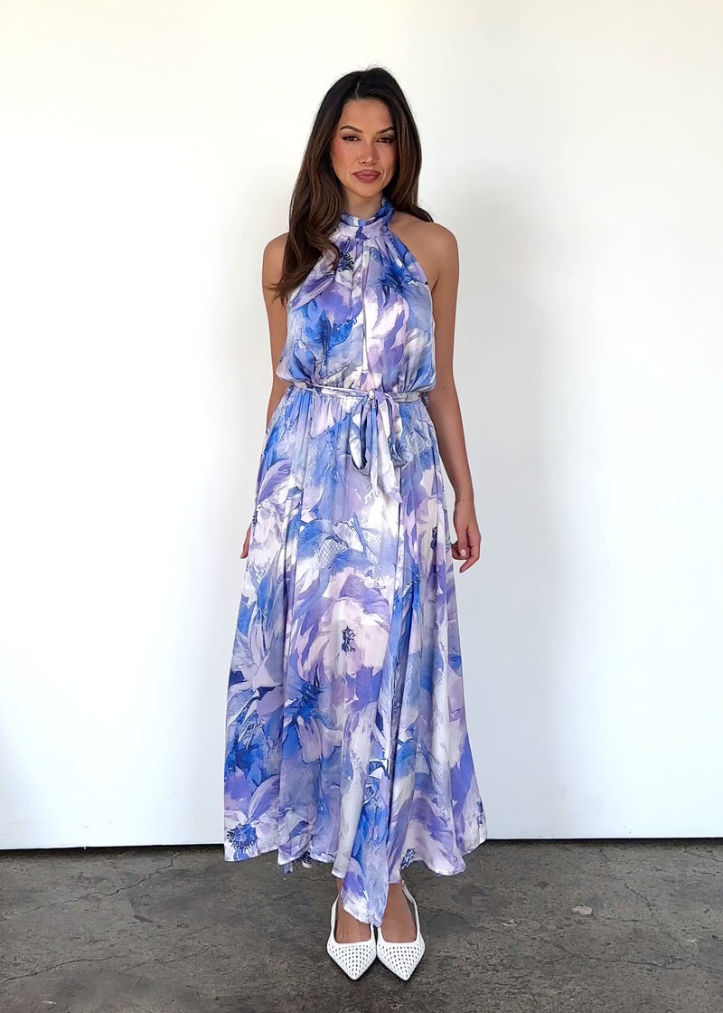 Bright and breezy, the Marca Halter Midi in blue floral is perfect for sun-drenched days. The halter neckline gives it a modern edge, while the floral print keeps it soft. Pair with espadrilles and a woven tote.