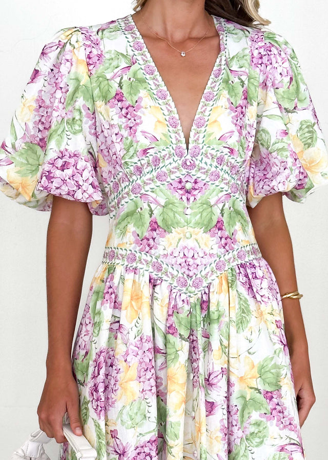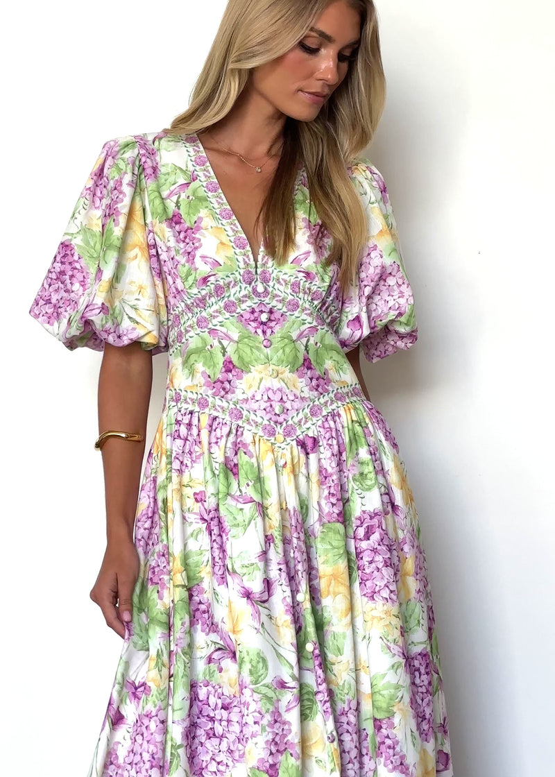 Radiate charm in the Marcelle Maxi Dress, a purple hydrangea beauty designed for effortless glamour. Style it with a braided crown and a sparkling crystal hair accessory to keep the look delicate. Pair it with pearl jewellery, a lilac handbag, and nude heeled sandals for a polished, timeless outfit.