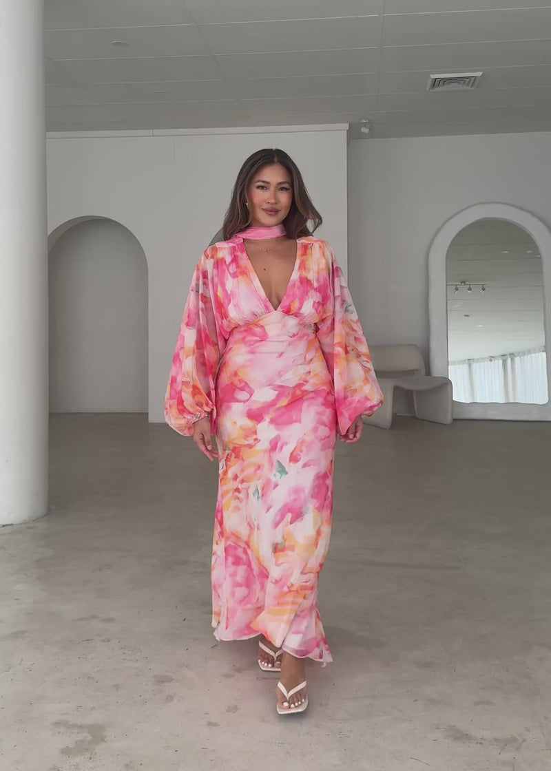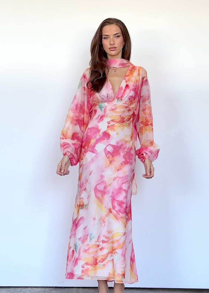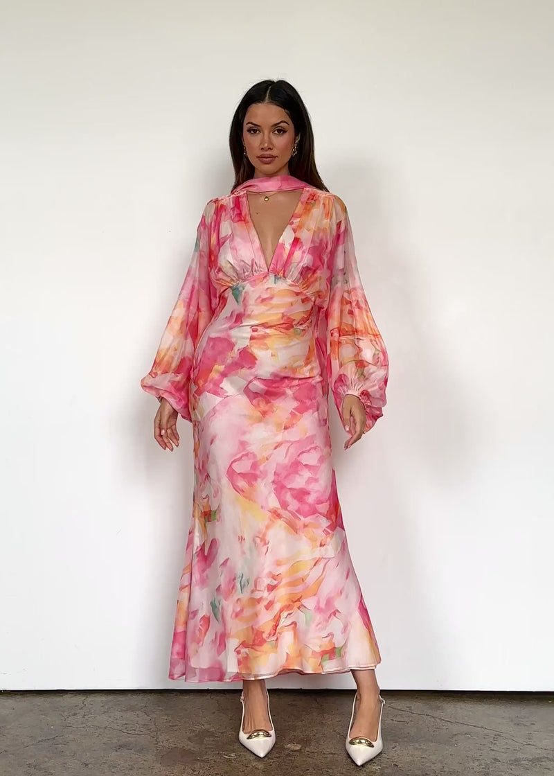 Colour meets cut in the Mayflower Midi Dress in Ruby Splash. Ideal for long lunches or night-out dinners, style with block heels and a matching clutch, or flat slides and oversized sunnies for a day edit.