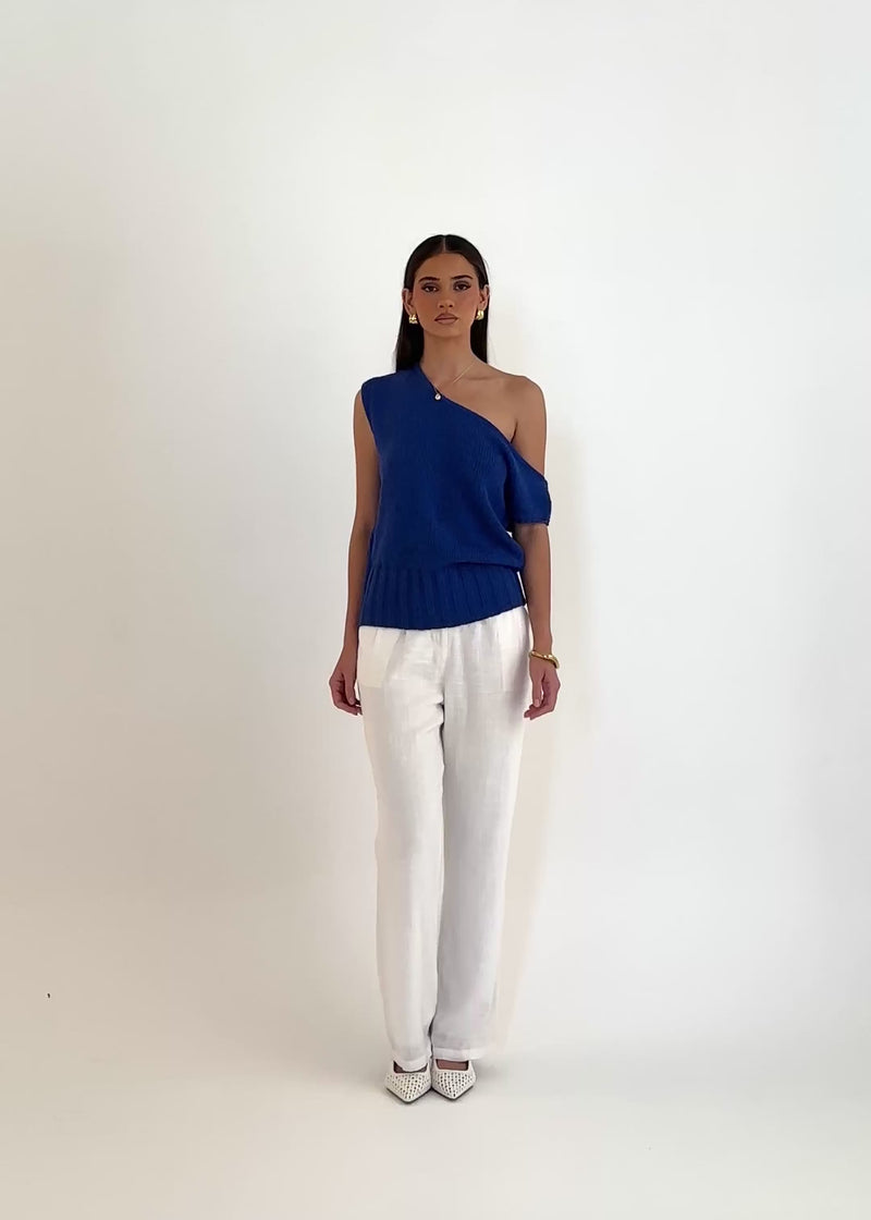 Bright and breezy, the Milana Drop Shoulder Top in cobalt brings a punch of colour to everyday styling. Pair with linen trousers or shorts and slides for that effortless off-duty vibe.