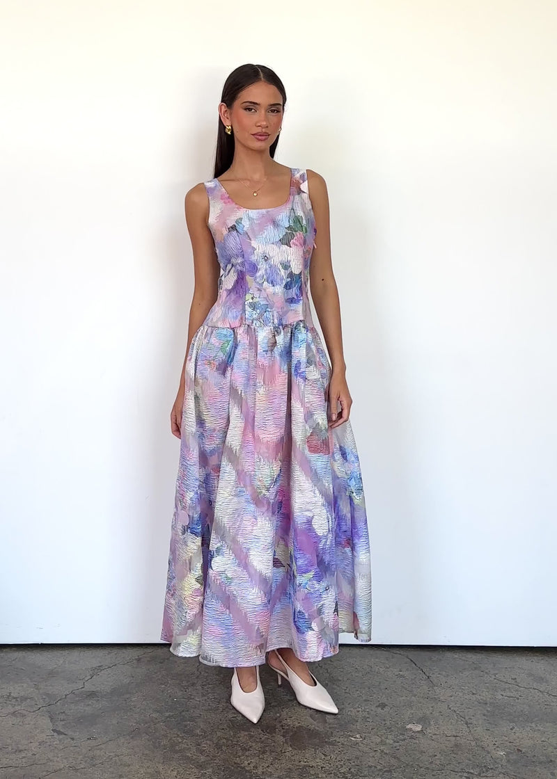 Floaty and graceful, the Milly Maxi Dress in Lilac Watercolour is your go-to for weddings, beach strolls, or weekend brunches. Pair with nude heels and simple gold hoops for a polished look.