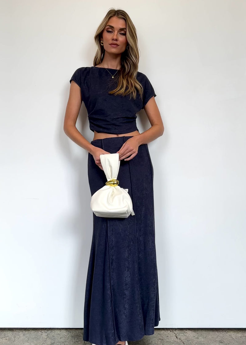 Classic and chic, the Mirage Set in Navy is a must-have for elevated styling. Team it with nude heels and a box clutch for events, or style separately with your favourite basics.