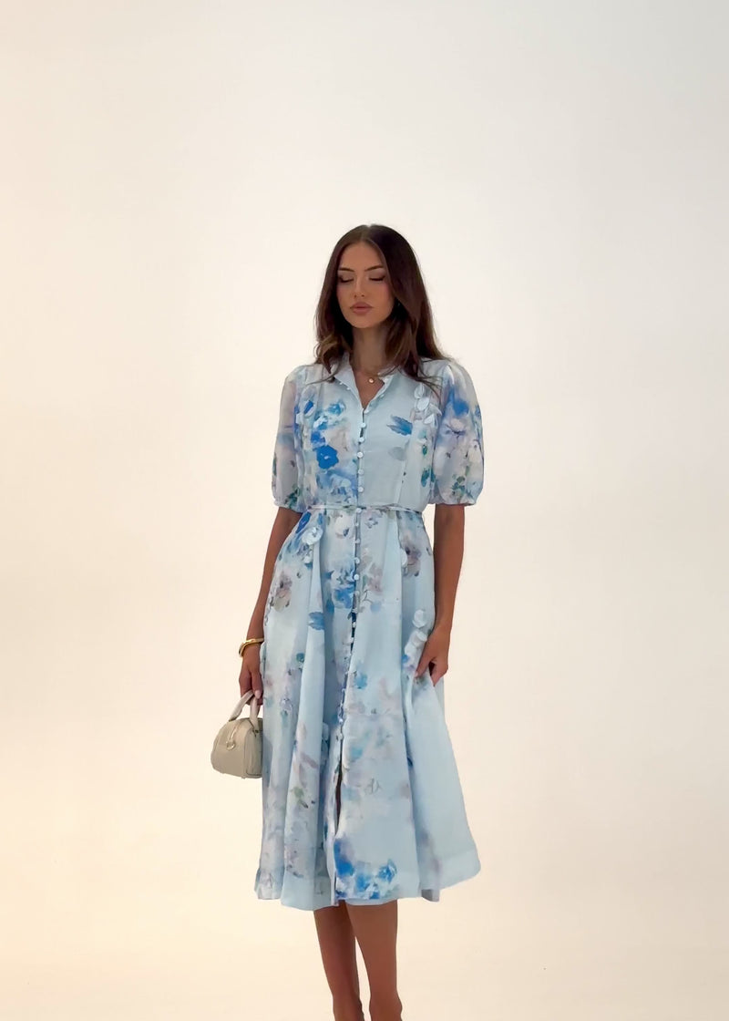 Effortlessly feminine, the Nikita Midi Dress - Blue Floral pairs beautifully with strappy sandals and a sunhat for picnics or block heels and a clutch for events. Its flowy cut makes it perfect for sunny days, long lunches, and everything in between.
